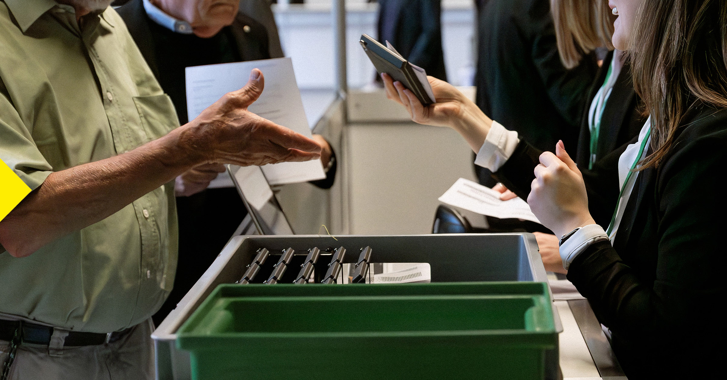 Nimbus prepares all the systems prior to the General Assembly. At the gate, shareholders are handed out their own VotingUnit, with their personal details registered according to the entry card. This data is deleted immediately at the end of the General Meeting.